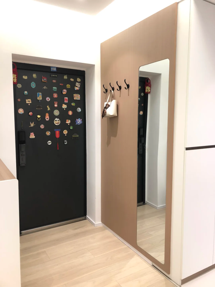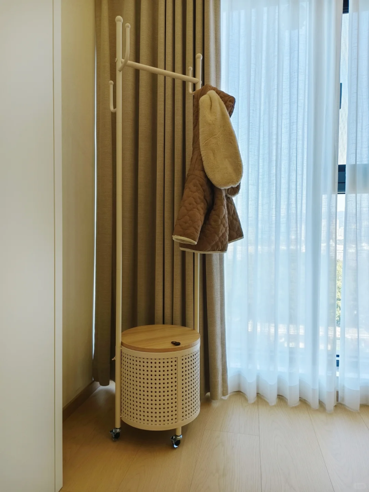 网友@笼中鸟 的分享:平时都是在玄关就将衣服换好,再进屋子,而且我的卧室的角落有一个小衣架,平时都是挂外套里面穿的衣服的,里外区分开能更加的卫生。