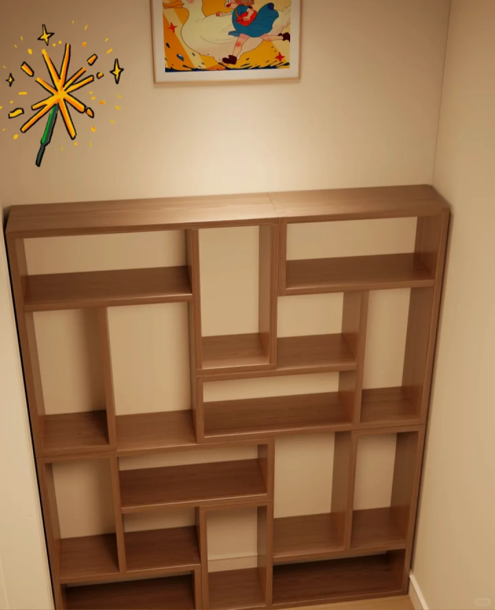网友@嘎嘎丽丽 的分享:我家卧室旁边的这个空间一直都不知道设计什么,突然想到给孩子设计一个小书架,而且不占地方,还非常好看,我真的太有才了。